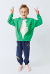Zielona bluza dziecięca w sportowym stylu, wykonana w 100% z naturalnej, oddychającej bawełny. Model rozpinany na całej długości z wygodną stójką, która chroni przed chłodem. Na froncie umieszczono haftowany motyw w kontrastowych kolorach, dodający całości oryginalnego charakteru. Idealna do szkoły, na spacer czy weekendowe aktywności – zapewnia swobodę ruchów i komfort noszenia przez cały dzień.