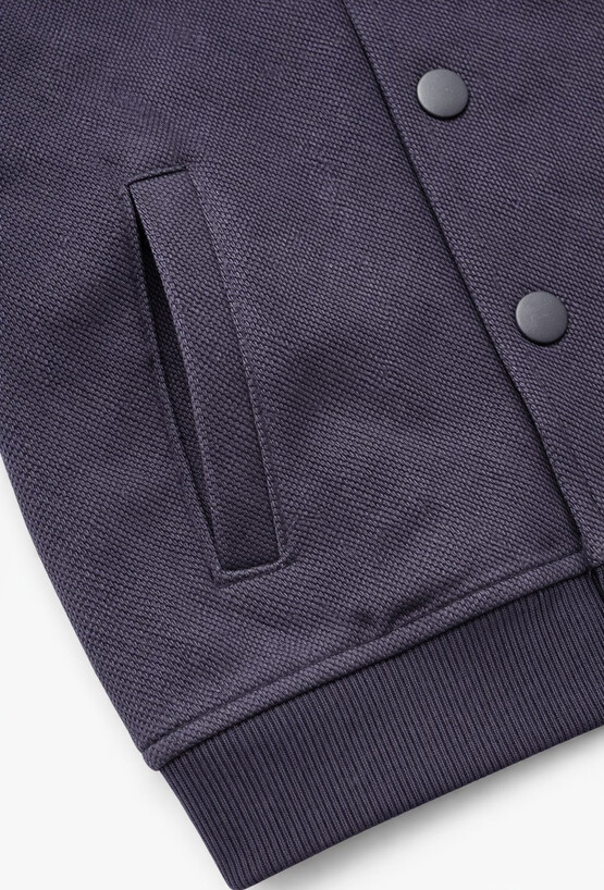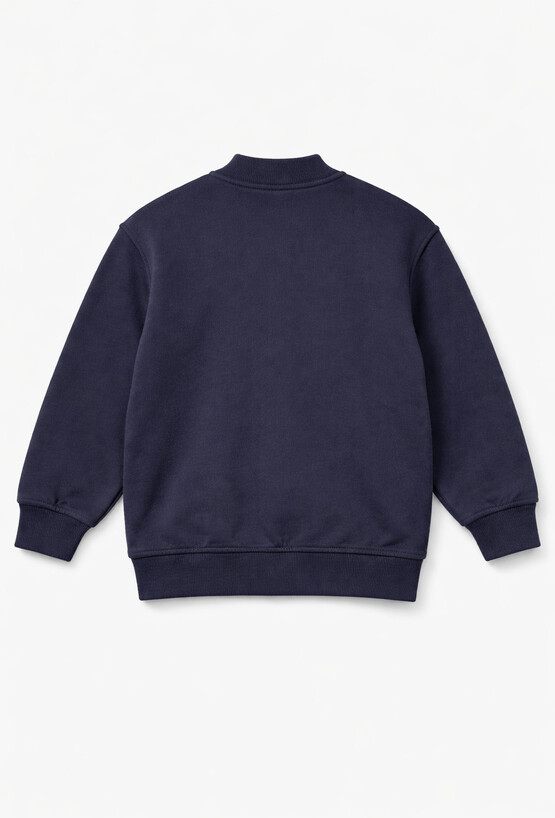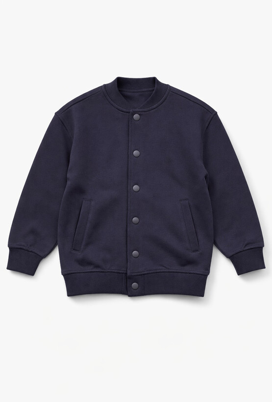Granatowa bomberka chłopięca to stylowa bluza, która świetnie sprawdzi się zarówno na rodzinne wyjścia, jak i do szkoły czy przedszkola. Uszyta z 100% bawełny pique – jest przyjemna w dotyku, przewiewna i wygodna w noszeniu. Model ma stójkę, zapięcie na napy oraz praktyczne kieszenie po bokach. Ściągacze przy rękawach i na dole pomagają dopasować fason i chronią przed chłodem.