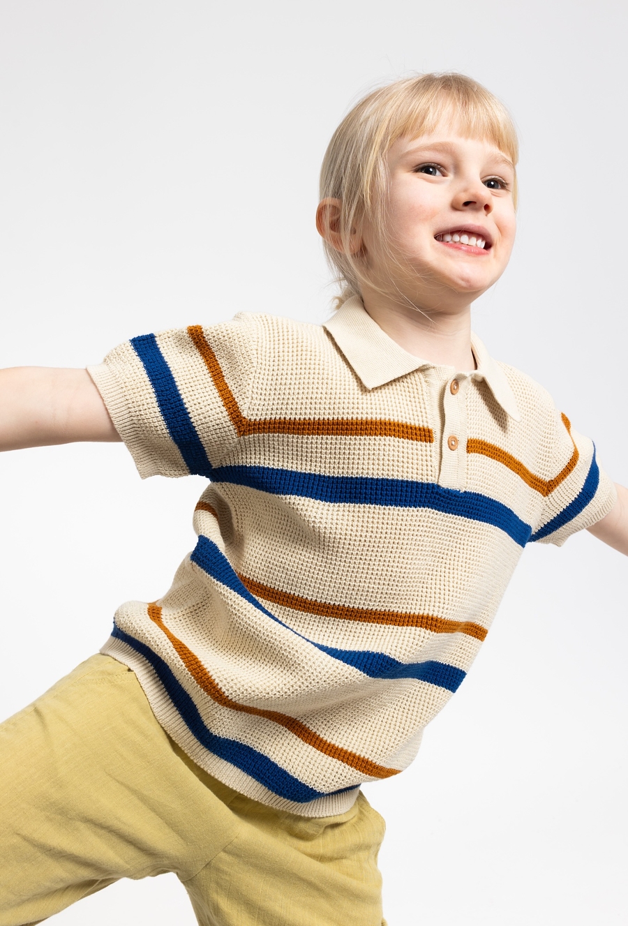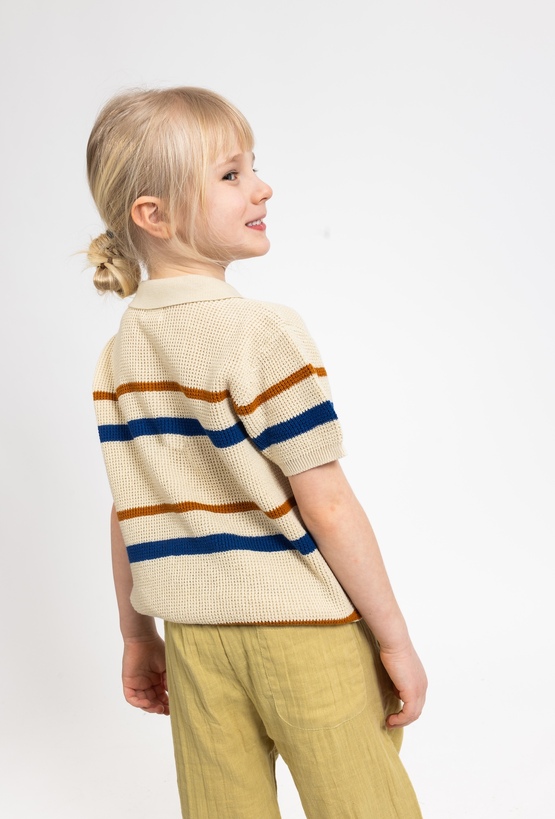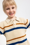 Sweter polo dla chłopca to świetne połączenie wygody i eleganckiego stylu. Wykonany w 100% z bawełny, ma swetrową, strukturalną dzianinę, która wygląda bardzo jakościowo i przyjemnie układa się na sylwetce. Kontrastowe pasy dodają mu charakteru, a krój comfort zapewnia swobodę ruchów. Kołnierzyk i zapięcie na guziki sprawiają, że model sprawdzi się zarówno na co dzień, jak i na rodzinne wyjścia czy do szkoły.