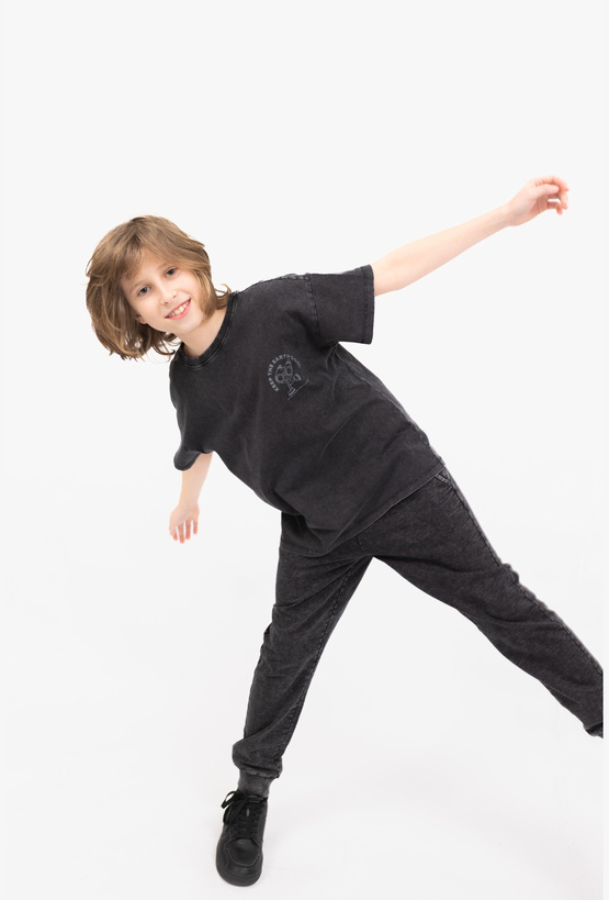 Wygodne, miękkie i w modnym, lekko „vintage” wydaniu. Szare spodnie dresowe z efektem sprania to idealna baza codziennych stylizacji – do szkoły, na plac zabaw i na weekend. Wykonane z 100% bawełny, są przyjemne dla skóry i komfortowe w noszeniu przez cały dzień. Krój regular zapewnia swobodę ruchów, a sznurek do regulacji w pasie pozwala łatwo dopasować spodnie do sylwetki. Miękkie ściągacze w pasie i nogawkach dobrze trzymają spodnie na miejscu i dodają sportowego wykończenia. Do tego dwie kieszenie boczne – na drobiazgi lub po prostu na wygodne schowanie rąk.